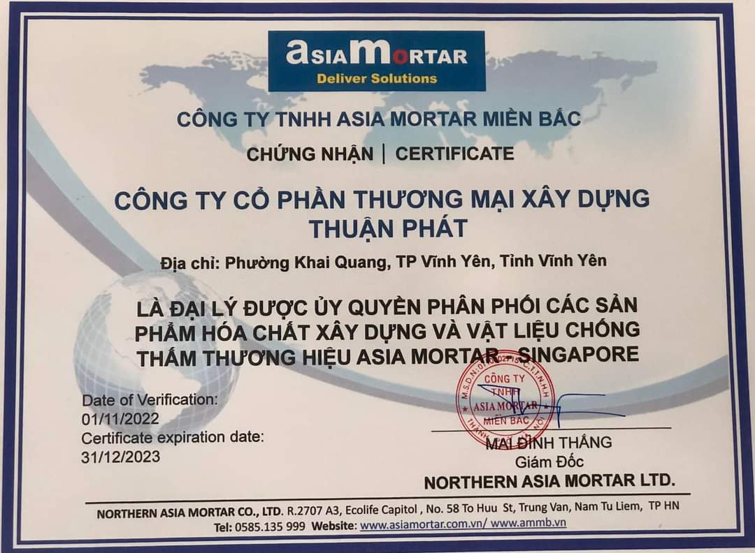 Là đại lý được ủy quyền phân phối các sản phẩm hóa chất xây dựng và vật liệu chống thấm thương hiệu ASIA MORTAR-SINGAPORE